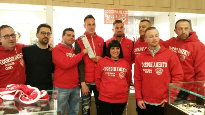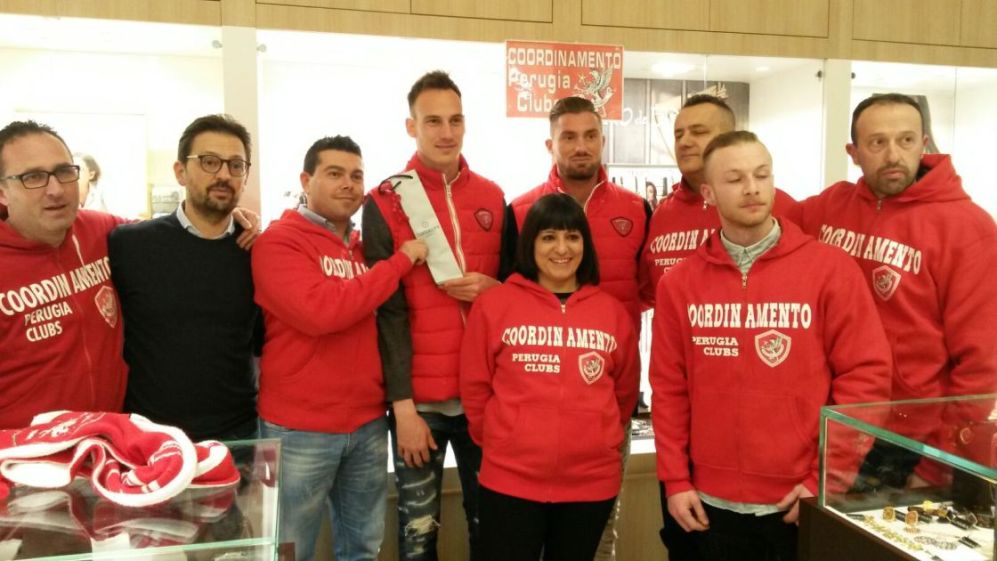 A Perugia già da giorni ormai si respira aria di derby e la città attende trepidante lo scontro di sabato tra i biancorossi e la Ternana. Nel frattempo, in vista di questa sfida, i tifosi cercano di motivare al massimo i propri beniamini affinché escano dal campo con una nuova vittoria. Va in questo senso anche la consegna del premio di tappa ‘Miglior grifone Gioielleria Bartoccini’ ai difensori Massimo Volta e Lorenzo Del Prete vincitori del concorso, rispettivamente, nelle partite Entella-Perugia e Perugia-Trapani. Obiettivo dell’iniziativa promossa dal Centro coordinamento Perugia club in collaborazione con le Gioiellerie Bartoccini è infatti anche quello di incentivare i giocatori del Perugia a dare sempre il meglio. Alla cerimonia, che si è svolta giovedì 3 marzo, alla gioielleria Bartoccini della stazione Minimetrò di Pian di Massiano, a conferire ai due atleti i buoni acquisto da spendere nei punti vendita Bartoccini sono stati Mauro Trampolini e Stefano Mortini, rispettivamente presidente e vicepresidente del Centro coordinamento Perugia club, Monica Landi, presidente delle Army girls, e Marco Scocciolini, direttore del punto vendita.