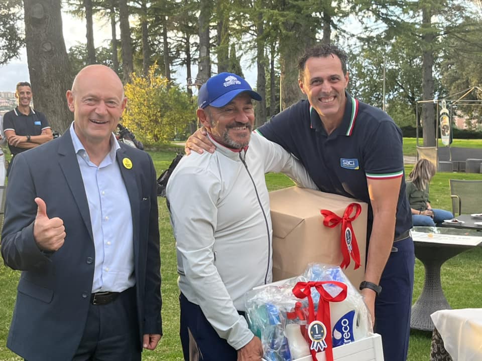 Sport e solidarietà al Golf Club di Santa Sabina grazie all’iniziativa di Saci Professional. La nota azienda perugina, diretta da Lorenzo Campanile, ha promosso tra gli amici e appassionati la prima edizione di ‘Avanti Tutta Golf Cup’, che si tenuta nella splendida struttura perugina domenica 2 ottobre. Un evento che ha voluto ricordare la straordinaria figura di Leonardo Cenci, che in vita ha a lungo collaborato sul piano professionale con Saci e per sostenere i progetti solidaristici dell’associazione, oggi Fondazione, da lui creata. Una bella giornata di sport, contraddistinta da un clima ideale, che ha visto la partecipazione di numerosi golfisti che hanno contribuito a sostenere ‘Avanti Tutta’ pagando in gara le loro ‘penalità’ (birdie). Ad aggiudicarsi la prima edizione di ‘Avanti Tutta Golf Cup’ è stato Piero Borghi, seguito da Roberto Quattrone e Aurora Antonelli.