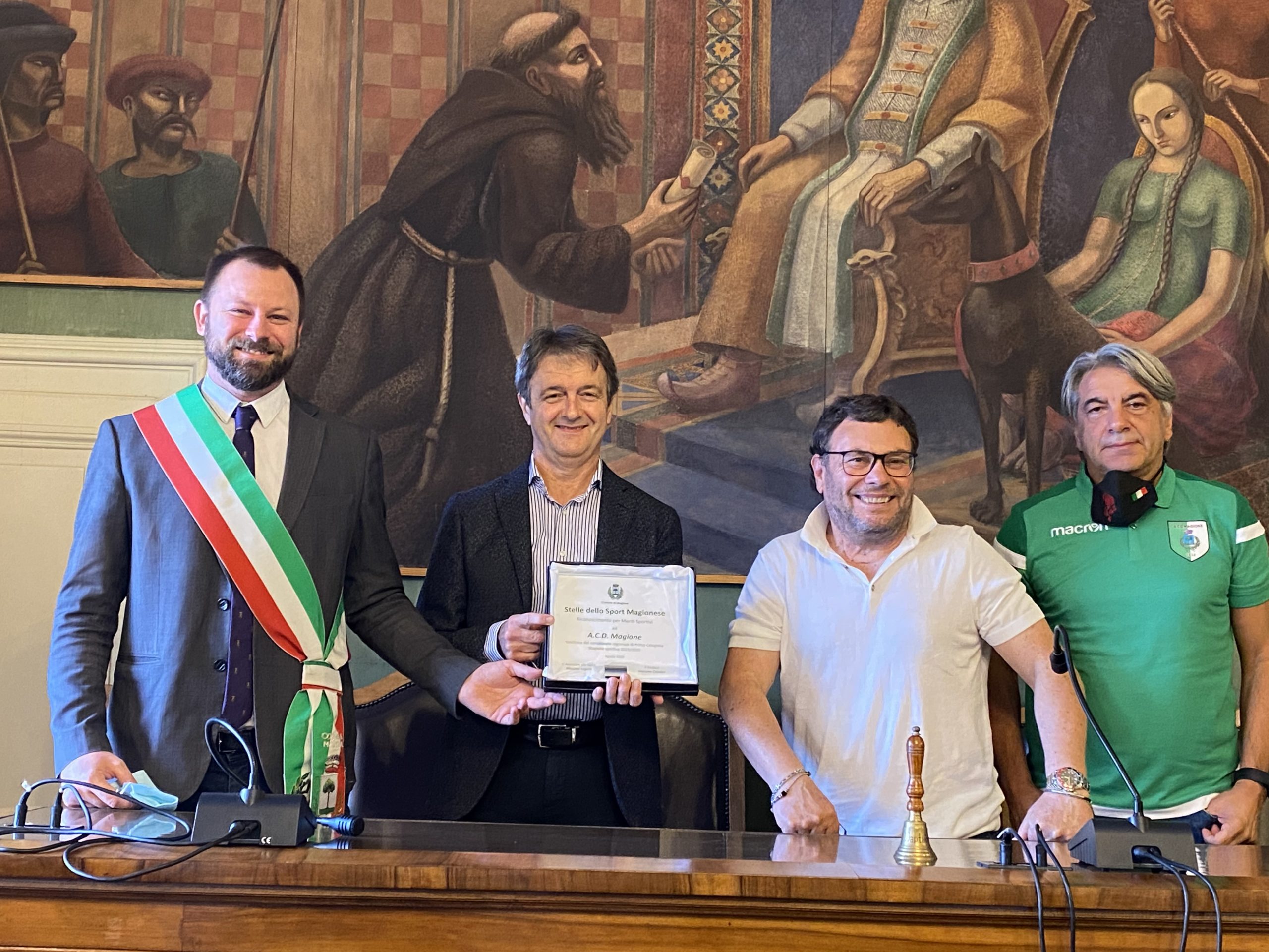 Consegnata all’Acd Calcio Magione, squadra vincitrice del campionato di Prima categoria 2019/2020 con conseguente passaggio nel campionato di Promozione, la targa “Stella dello sport magionese 2020” istituita dall’assessorato allo sport del Comune di Magione per portare a conoscenza del territorio comunale personaggi che si sono distinti nelle diverse discipline sportive.