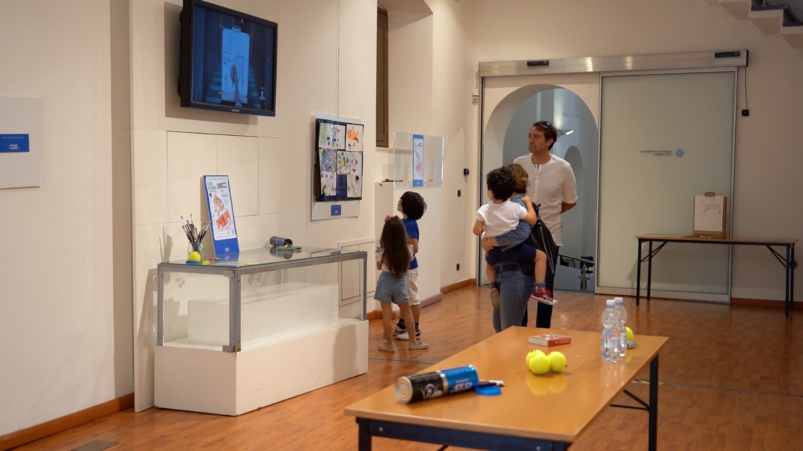 All’ex Borsa merci esposti i disegni realizzati dagli alunni delle scuole primarie nell’ambito del contest ‘Tennisti in cerca d’autore’, sabato 8 e domenica 9 giugno. Sabato 15, poi, premiazione vincitore. Ai piccoli visitatori della mostra, in regalo gadget Mucca Grifo e Pass d’artista per assistere alle partite