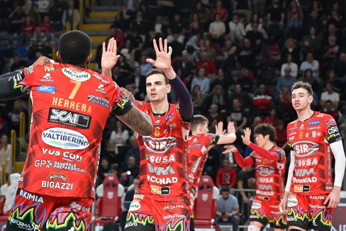 esultanza during Cucine Lube CIVITANOVA vs Sir Susa Vim PERUGIA, 17ª giornata (6ª di ritorno) regular season Superlega Credem Banca - Campionato italiano di Pallavolo Maschile - Volley Volleyball at PalaBarton Perugia IT, 19 gennaio 2025. Photo ©2025 Michele Benda