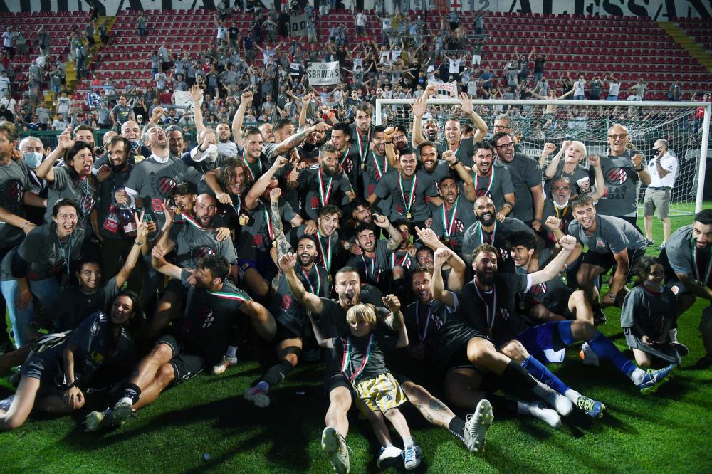 Quarantasei anni per coronare un sogno. Quello dell’Alessandria, che dal 1975 aspettava l’agognata promozione in Serie B, raggiunta finalmente dai grigi con la vittoria, 5-4 ai rigori, contro il Padova, dopo che i centoventi minuti di gioco si erano chiusi sullo zero a zero come l’andata dell’“Euganeo”. A decidere la promozione dei grigi, che hanno segnato tutti e cinque i rigori, l’errore dal dischetto di Gasbarro ma la squadra di mister Mandorlini la Serie B l’aveva clamorosamente persa in campionato buttando alle ortiche i sei punti di vantaggio sul Perugia a sei giornate dalla fine proprio per gli errori del tecnico, primo responsabile di questa enorme delusione per dirigenti e tifosi del Padova, costruito sapientemente dal d.s Sogliano in estate e rinforzato a Gennaio. Complimenti sinceri, invece a mister Moreno Longo, vero artefice della promozione alessandrina, visto che era subentrato sulla panchina dei grigi al posto di Gregucci all’ultima di andata con un grave ritardo sulla capolista Como. Longo ha saputo rimontare il terreno perso, sfiorando la promozione diretta, persa nello scontro diretto di Como alla penultima di campionato. Ma non si è perso d’animo e ha raggiunto il grande risultato nei playoff, dopo aver rimontato la Feralpisalò nei quarti, pareggiato con l’Albinoleffe dopo aver vinto fuori casa con il preziosissimo gol, di Stanco ai supplementari in semifinale e domato la “corazzata” Padova. Citazione dovuta per il portiere dei grigi Pisseri, che ha salvato con un paio di grossi interventi su Biasci, la propria porta. Bentornata in B, Alessandria.