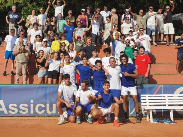 Una domenica che entra di diritto nella storia dello sport umbro. La firma lo Junior Tennis Perugia, con la sua formazione di serie A2 maschile che riesce a centrare una memorabile promozione, portando per la prima volta il tennis regionale in serie A1, massimo proscenio nazionale. Una vittoria straordinaria quella conquistata dai ragazzi di capitan Roberto Tarpani, che sono riusciti a rimontare il Match Ball Firenze, vittorioso 4-2 all’andata. Alla vigilia si presentava come un obiettivo proibitivo, ma quando in campo metti cuore, tecnica, tenacia e soprattutto attaccamento al club, tutto è possibile. E così i gialloblù sono riusciti a festeggiare centrando un incredibile 5-1 che ha mandato in estasi il circolo perugino. Incontro iniziato con una fantastica prestazione sciorinata da Francesco Passaro, in dubbio alla vigilia per problemi fisici, capace di battere al super tie-break il francese Jonathan Eysseric, già nr. 200 Atp. Francesco ha giocato una partita spettacolare, vincendo il primo set 6-0 e poi rintuzzando la rimonta dell’avversario con un finale in crescendo. Il secondo punto è arrivato dal solito strepitoso Tomas Gerini, che ha faticato molto al cospetto di Filippo Borella ma non ha mancato il bersaglio al termine di una sfida equilibratissima. Dopo il punto dei toscani conquistato dal croato Victor Galovic, nr. 269 mondiale, contro Skander Mansouri, ci ha pensato il sempre sicuro Gilberto Casucci ha riportare al doppio vantaggio la formazione perugina, con una vittoria in scioltezza. E poi spazio ai doppi, dove si è concretizzato il lieto fine per lo Junior. L’impresa è firmata dai ragazzi cresciuti nel vivaio, e quindi la soddisfazione è doppia. Francesco Passaro e Gilberto Casucci, affiatatissimi e già campioni italiani Under 16, hanno domato i favoriti Galovic e Borella mentre sul centrale Mansouri e Gerini hanno dato il là alla festa con il punto finale. “Orgogliosamente penso che sia una giornata difficile da dimenticare – commenta l’emozionato capitato Roberto Tarpani, che non ha sbagliato una mossa e che gestisce il club di via XX settembre insieme ai colleghi Maestri Andrea Grasselli, Stefano Lillacci e Francesco Vazzana -, i ragazzi sono stati semplicemente fantastici. Dedico questo successo a mio padre ed a Poppy Vinti (fondatore dello Junior, ndr)”. Gioia fino a tarda serata per il team gialloblù, entrato di diritto nella storia dello sport umbro.
