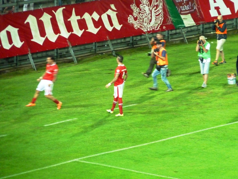 CRONACA: Per la prima ufficiale al “Curi”, Bisoli presenta il Perugia con il 4-2-3-1, orfano degli squalificati Volta e Del Prete e degli infortunati Parigini e Belmonte. Davanti a Rosati, c’è l’esordio in biancorosso per il giovane scuola Fiorentina Mancini e per il fluidificante ex Latina, Alahssan. Con loro l’esperienza di capitan Comotto, tornato terzino e del redivivo Rossi. In mezzo tanta corsa e grinta con la coppia Salifu-Rossi. Sulla trequarti, con rigorosi compiti di copertura, il tecnico emiliano schiera il trio Fabinho, Di Carmine e Lanzafame, con quest’ultimo riportato nell’originario ruolo di esterno. Davanti c’è Matteo Ardemagni, che ha recuperato dalla botta subita nell’amichevole contro il Bari. L’avvio di gara non è frizzante. La Reggiana prova a pungere con il tridente offensivo (Giannone, Arma e Siega), il Perugia copre e riparte. Al 12′ Ardemagni entra in area dalla zona sinistra, ma la conclusione non inquadra la porta. Qualche minuto dopo (16′) ci prova Fabinho: tiro dai venti metri e palla che esce di un soffio. Al prima, vera, incursione offensiva la Reggiana trova il gol. E’ il 21′ quando Giannone piazza in area un cross per la testa di Siega, che anticipa Comotto e beffa Rosati. Il Grifo subisce la botta ma reagisce subito. Ardemagni (23′) si ritrova sui piedi un pallone vagante dalla sinistra e non perdona, 1-1. Ritrovato l’equilibro la partita si addormenta. Lanzafame ci prova su punizione ma senza fortuna. In avvio di ripresa la Reggiana prova a dare maggior peso all’attacco, dentro Sinigaglia per Giannone. Neanche due minuti, però, il Perugia si porta in vantaggio. Ardemagni entra in area e viene platealmente atterrato da Di Giosia: calcio di rigore e ammonizione per il difensore emiliano. Dal dischetto si presenta lo stesso bomber biancorosso, che non sbaglia: 2-1. Ardemagni ci riprova al 22′, su ottimo invito di Salifu (instancabile) ma la conclusione è debole e il portiere respinge. La Reggiana si fa vedere un paio di minuti dopo con una punizione di Bruccini, con Rosati che fa buona guardia. La partita di infiamma, Lanzafame imbecca Ardemagni che da buona posizione calcia sul portiere, sulla respinta arriva Rizzo che trova la prodigiosa respinta del difensore Spanò. Il tris è nell’aria e al 27′ lo sigla Lanzafame, che raccoglie al limite un pregevole assist di Ardemagni e di destro non lascia scampo a Perilli (3-1). Nel finale brividi per Rosati: la punizione Frascatore si stampa sulla traversa. Esordio con la maglia biancorossa per il neo acquisto Zapata, subentrato al 45′ a Lanzafame.