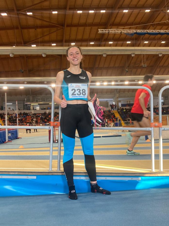 Partendo dalla distanza più lunga, inizia a dare i suoi frutti il cambio di modalità di allenamento della giovane Cecilia Castellani (nella foto). L’atleta dell’ARCS CUS PERUGIA, classe 2002, è autrice di un’ottima prova: negli 800mt promesse, si piazza al 12esimo posto. Ma non è tanto la posizione ad essere significativa, quanto il tempo. Cecilia, infatti, ha concluso la sua gara in 2:16.04, abbassando di ben 3 secondi il precedente record umbro indoor, sempre da lei detenuto. Un risultato questo che è, sicuramente, un buon auspicio in vista delle prossime prove outdoor.