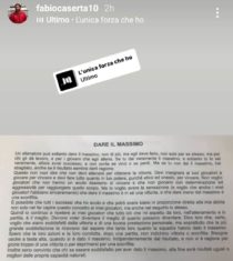 Su Instagram, invece, il tecnico dei biancorossi Fabio Caserta ha postato una storia con sottofondo musicale (Ultimo – L’unica forza che ho) riportante queste parole:
