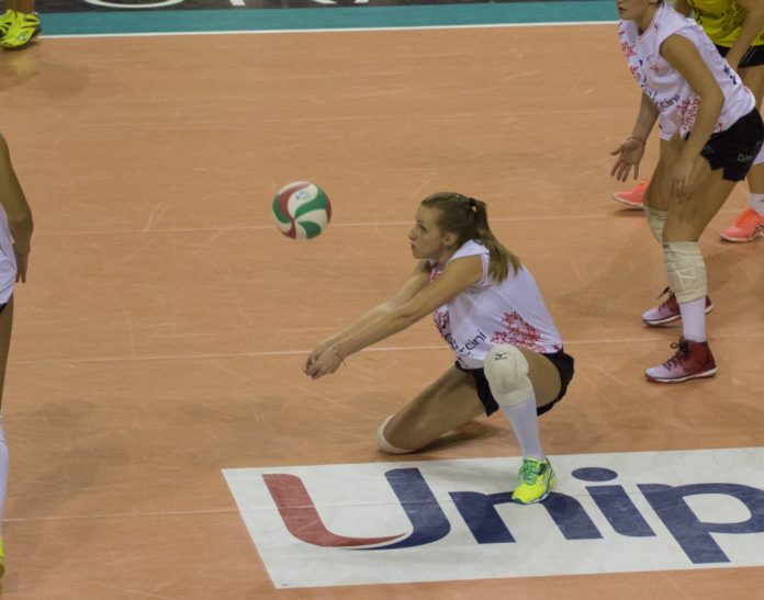 Per la Bartoccini sono scese in campo Pascucci, Barbolini, Fiore, Giampietri, Zuleta, Repice e con Rimoldi al palleggio molto emozionata.