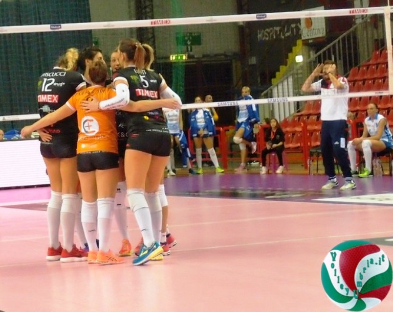 Indisponibile fino a fine stagione Rimoldi per problemi di salute, Bovari schiera Tomic opposta a Mazzini, Repice e Zuleta centrali, Lotti e Pascucci schiacciatrici, Giampietri libero. Dall’altra parte della rete Casillo e Caneva sono le centrali, Battistoni palleggiatrice, Zanette opposto, Markovic e Saguatti in banda, Gibertini libero.