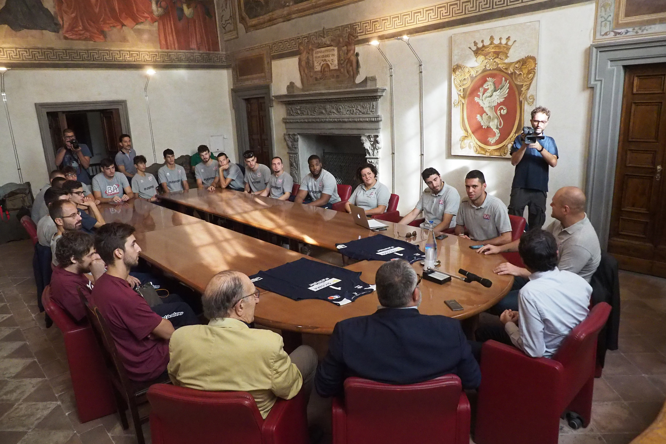 Durante l’incontro è stata regalata al Sindaco ed all’assessore Fioroni una maglia della squadra con i loro nomi.
