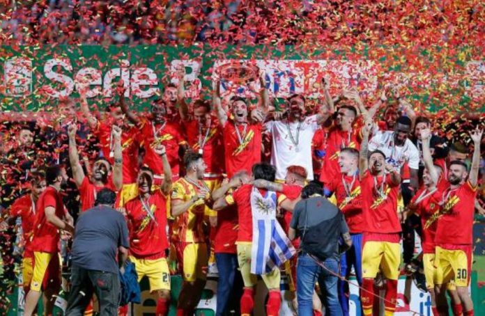 Prima storica promozione in Serie A per il Benevento. La squadra di Baroni si è imposta 1-0 in casa contro il Carpi nella finale di ritorno dei playoff della Serie B ConTe.it guadagnandosi la promozione nella massima serie dopo lo 0-0 dell’andata. I sanniti vanno così a fare compagnia a Spal ed Hellas Verona, le altre due squadre promosse al termine del campionato.  Sfuma invece l’immediato ritorno in Serie A degli emiliani, capaci di eliminare in questi playoff prima il Cittadella e poi il Frosinone. Partita vibrante fin dai primissimi minuti di gioco. Al 4’ Puscas calcia da posizione defilata sfiorando di poco la porta, dalla parte opposta un minuto dopo MBakogu impegna Cragno al primo intervento, in due tempi, della serata. L’attaccante nigeriano è il più pericoloso dei suoi e va vicino al bersaglio anche al 17′ e al 18′. Dopo i primi venti minuti sale in cattedra la formazione di casa, che spreca prima con Lucioni e poi con Puscas. Decisivo in entrambe le occasioni Belec. Il portiere del Carpi non può nulla però al 32′ sulla girata di destro di Puscas sull’appoggio di Venuti. Il Carpi accusa il colpo e rischia grosso in avvio ripresa, ma il tentativo dalla distanza di Viola al 5′ si stampa contro il palo. L’undici di Castori, che avrebbe bisogno di una vittoria per strappare la promozione in Serie A, ha un sussulto d’orgoglio attorno al quarto d’ora: le occasioni di Di Gaudio e Sabbione non impensieriscono però Cragno. Con il passare dei minuti il Benevento vede sempre più vicino il traguardo e dopo il triplice fischio finale dell’arbitro Pasqua può festeggiare. I campani, proprio come la Spal, fanno il doppio salto e centrano un’incredibile promozione in Serie A (fonte: legaserieb.it)
