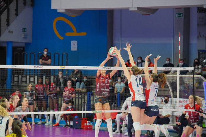 La Bartoccini-Fortinfissi Perugia non riesce a replicare la prestazione di due domeniche fa e cede a Bergamo 3-1 (25-23 25-18 14-25 25-18 i parziali), in una partita che sostanzialmente si è decisa al primo set quando le ragazze di coach Cristofani hanno saputo recuperare, andare in vantaggio senza però trovare il guizzo giusto sul finale.