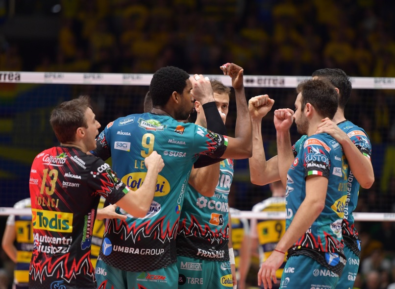 SIR SAFETY CONAD PERUGIA: De Cecco-Atanasijevic, Podrascanin-Ricci, Leon-Lanza, Colaci libero. All. Bernardi.