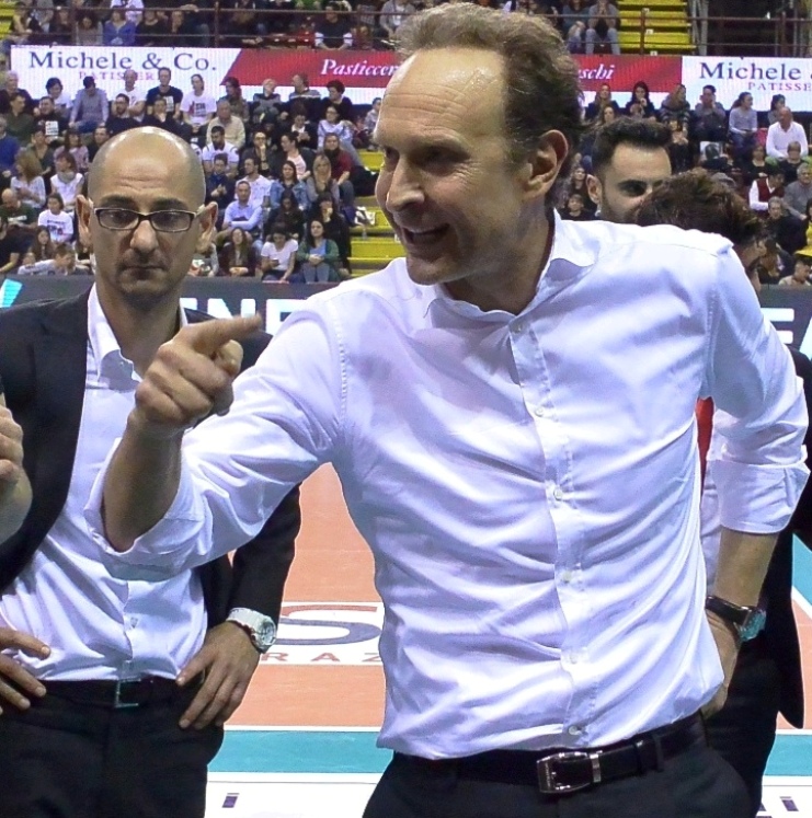 Soddisfatto anche Massimo Colaci libero Sir Colussi Sicoma Perugia.