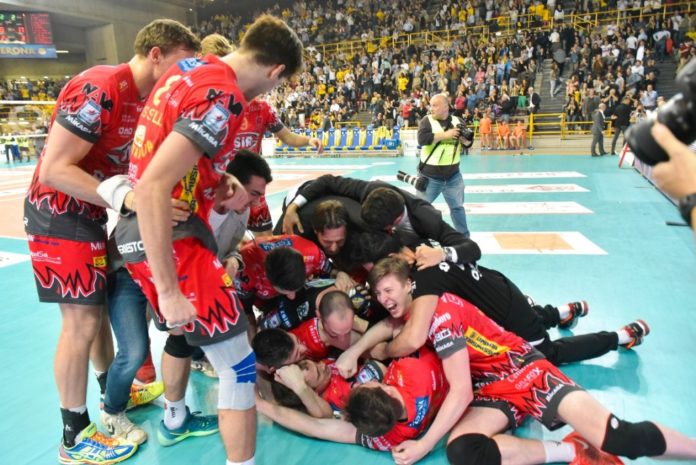 Tante, intense, difficilmente raccontabili quelle vissute ieri sera al PalaOlimpia di Verona dove la Sir Safety Conad Perugia ha strappato all’ultimo tuffo il pass per le semifinali scudetto. Semifinali che partono subito tanto che i Block Devils, rientrati a notte fonda dopo la lunga trasferta, già oggi pomeriggio sono al PalaEvangelisti per una seduta defaticante e per cominciare una mini-preparazione in vista di sabato pomeriggio, giorno di gara 1 a Civitanova (inizio alle ore 18:00). Si va in casa della Lube, si va a sfidare la regina della SuperLega, si va ad incrociare la candidata principale al titolo. Ci si va con l’euforia della vittoria di ieri, soffertissima, quasi insperata alla fine, ma proprio per questo dannatamente bella. Il capitano Simone Buti: