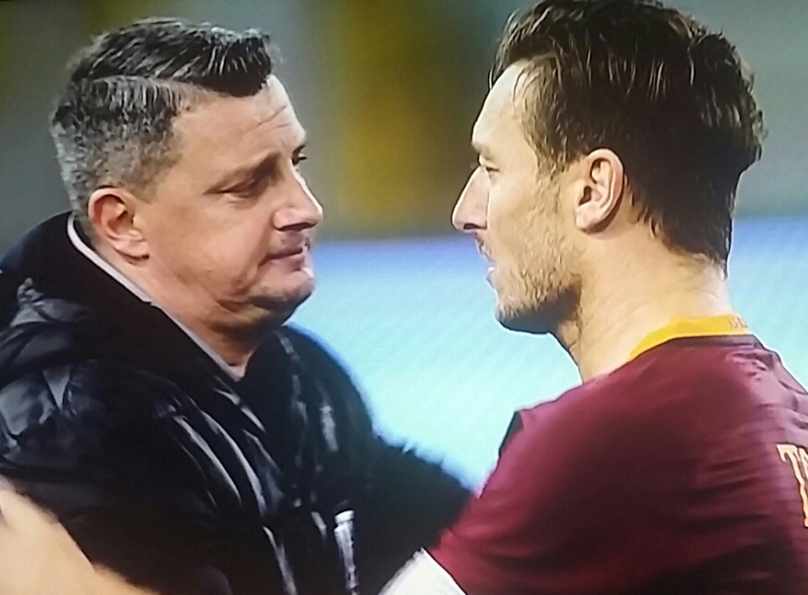 (Nella foto il bellissimo abbraccio a fine partita tra Camplone e capitan Totti)
