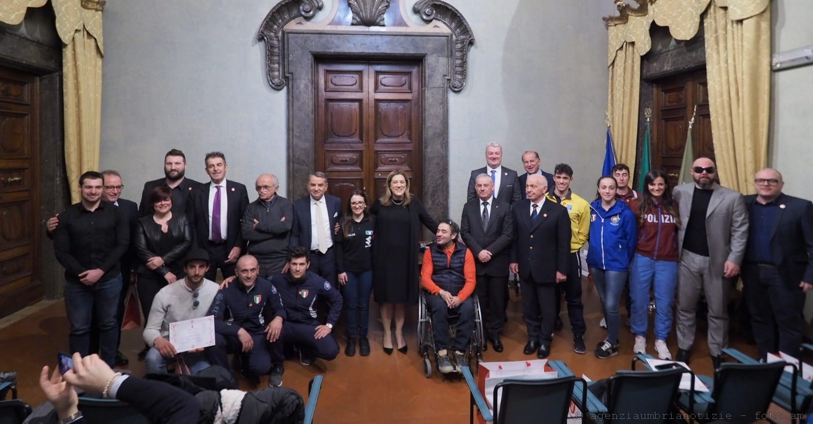 Gli atleti paralimpici Gianluca Tassi (anche presidente regionale del Cip), Jenny Narcisi, Riccardo Menciotti, Ubaldo Cecilioni e Mario Valentini, commissario tecnico della nazionale paralimpica di ciclismo, sono stati nominati “Ambasciatore dell’Umbria, per meriti sportivi” questa mattina durante una cerimonia svoltasi a palazzo Donini alla presenza della presidente della Regione Umbria, Catiuscia Marini, e del vicepresidente con delega allo sport ed al turismo, Fabio Paparelli. oltre a loro sono stati premiati altri atleti e società sportive afferenti al Coni.