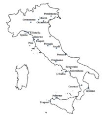 Questa la cartina geografica della prossima Serie B che evidenzia la presenza di 6 squadre del Nord, 7 del Centro e 7 del Sud.