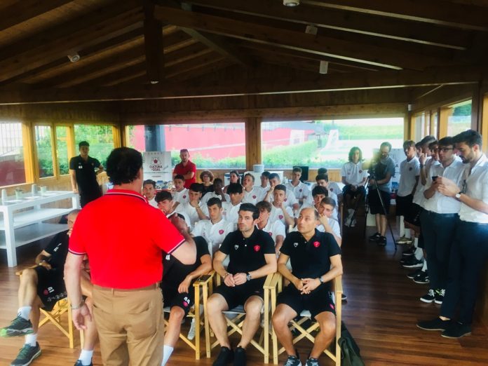 Ha preso il via a Castel Rigone di Passignano sul Trasimeno la prima settimana di programmazione di Cultura in Goal, l’evento di Group Tevere Servizi che punta a promuovere il patrimonio culturale umbro attraverso il calcio, lavorando al contempo alla formazione dei giovani calciatori. La formazione Primavera dell’Ac Perugia calcio soggiornerà, quindi, nel relais ‘La Fattoria’ fino a lunedì 6 agosto, svolgendo le proprie sedute di allenamento nello stadio ‘San Bartolomeo’ e visitando e scoprendo il borgo lacustre, immerso in questi giorni nelle musiche del Festival internazionale dei giovani concertisti. Giovedì 2 agosto, nella sala stampa dello stadio di Castel Rigone, si è svolta anche la prima iniziativa culturale del progetto, che ha visto i ragazzi allenati da mister Pagliari partecipare a un incontro sul tema della ‘Cultura del cibo’. All’inizitiva sono intervenuti lo storico Giovanni Riganelli, la dirigenza dell’Ac Perugia calcio e il sindaco di Passignano Sandro Pasquali. Insieme ai giovani calciatori si è parlato della grande tradizione italiana in questo campo (il 2018 è stato anche dichiarato Anno del cibo italiano), del rapporto tra cibo e cultura e tra cibo e sport, in particolare di sana alimentazione. Attraverso il cibo, si è anche cercato di riscoprire le origini storiche di Castel Rigone, proprio in questi giorni in cui il piccolo borgo celebra la propria storia con la Festa dei barbari.