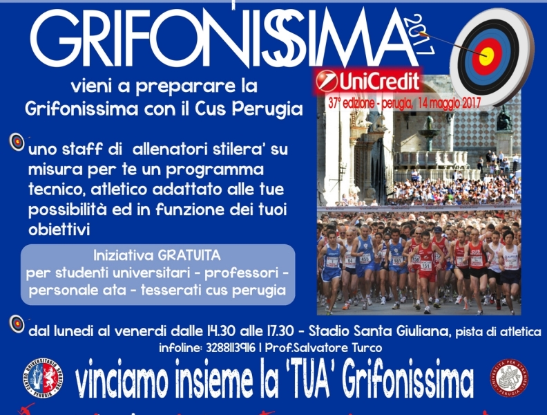 Gli appuntamenti agonistici si infittiscono per la polisportiva Cus Perugia, una delle più grandi del territorio regionale e nazionale, che è attiva su molteplici fronti con un ampio ventaglio di discipline. Tra le tante che quotidianamente vengono portate avanti, comincia a crescere la considerazione per il podismo, con gli atleti che stilano il calendario degli appuntamenti e cominciano a fissare le proprie scadenze. È ancora lontana la data del 14 maggio ma sull’agenda degli appassionati c’è già il circoletto rosso perché sarà il giorno della Grifonissima 2017, evento di richiamo nazionale che è giunto alla trentasettesima edizione. I professionisti della corsa stanno pianificando i loro allenamenti per arrivare nella condizione ottimale alle competizioni cui vogliono partecipare, una programmazione dettata dall’esperienza maturata sul campo. Gli amatori invece molto spesso si avvicinano alle gare senza adeguata preparazione, per mancanza di conoscenze della materia o per assenza di stimoli, compiendo l’errore di non fissare bene in mente quale sia l’obiettivo da centrare. A tutti coloro che si vogliono cimentare con l’evento più famoso del capoluogo umbro viene incontro il club biancorossoblu del presidente Pier Luigi Cavicchi che ha ideato già da due anni un servizio personalizzato e totalmente gratuito di allenamento. Grazie alla sezione Atletica Leggera nel mese di febbraio le attenzioni dei tecnici abilitati comincerà a rivolgersi alle esigenze di tutti quelli che si apprestano ad accettare la sfida per affrontare i 12 chilometri del percorso. Tutte le settimane, nei giorni che vanno dal lunedì venerdì (dalle ore 14,30 alle ore 17,30), allo stadio di Santa Giuliana il prof. Salvatore Turco sarà a disposizione di chi cerca un supporto professionale per migliorare le proprie prestazioni. Con lo slogan ‘Vinciamo insieme la tua Grifonissima’ parte il servizio di personal trainer totalmente gratuito, dedicato agli studenti universitari, ai docenti, al personale ata ed ai tesserati che ne vogliano fare richiesta. Tutti coloro che correranno con i colori del Cus Perugia potranno essere inseriti nella speciale classifica del Criterium che mette a confronto i vari sodalizi universitari italiani, oltre alla graduatoria generale. Al centro universitario sportivo continua nel frattempo la campagna di reclutamento per entrare a far parte dei ‘runner’ con l’agevolazione ulteriore dell’iscrizione gratuita alla Grifonissima 2017 per tutti i tesserati che fanno parte del gruppo e che sono in regola con le norme vigenti previste per l’attività agonistica. Per tutte le informazioni è possibile rivolgersi alla segreteria del Cus Perugia che si trova in via Tuderte, 10 (telefoni 075-32120) oppure contattare direttamente il responsabile tecnico del progetto (328-8113916), ma è anche possibile consultare il sito internet www.cusperugia.it che fornisce notizie dettagliate.