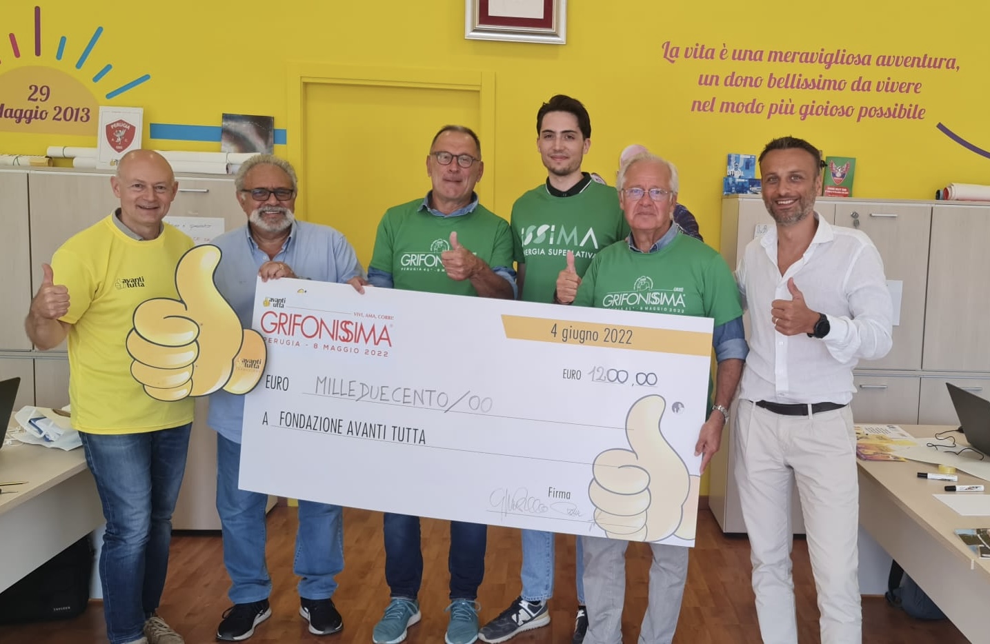 La Grifonissima a sostegno della Fondazione Avanti Tutta. Dalla manifestazione podistica più famosa e storica della città di Perugia è arrivato un importante contributo per il progetto di riqualificazione del Day Hospital del reparto di oncologia dell’ospedale di Perugia, di cui la stessa Fondazione si è fatta promotrice e carico del costo dei lavori.
