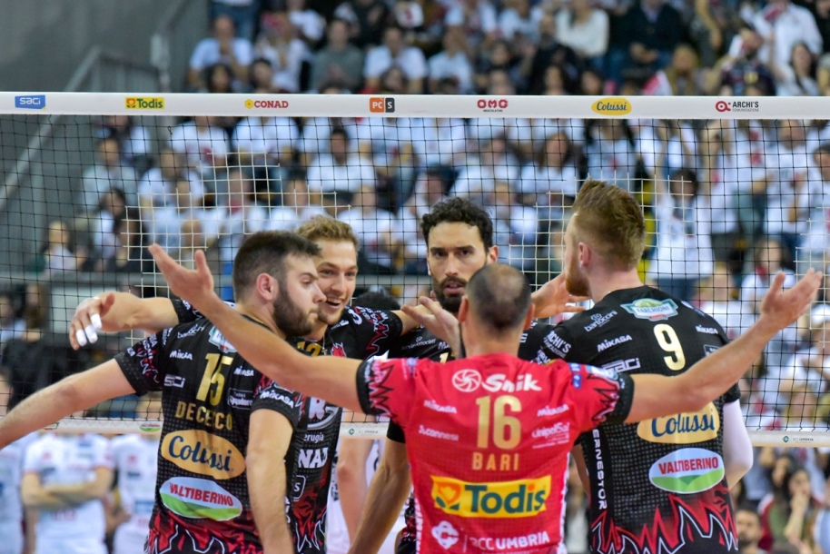 SIR SAFETY CONAD PERUGIA: De Cecco-Atanasijevic, Podrascanin-Birarelli, Zaytsev-Berger, Bari libero. All. Bernardi.