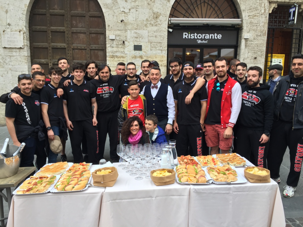 I Grifoni Perugia si sono presentati alla città. La squadra di football americano ha rinnovato l’appuntamento con un brindisi benaugurale in centro storico presso il ristorante Bistrot di Piazza Matteotti. Gli atleti della prima squadra, i tecnici e i dirigenti si sono ritrovati nel tardo pomeriggio di venerdì 17 maggio per celebrare la ‘fresca’ conquista dei play-off e per confermare il loro impegno a tenere alto il nome del ‘Grifo’ in giro per l’Italia.