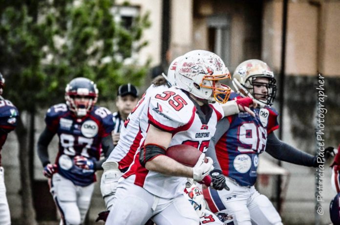 Classe ’93, con la maturità di un veterano. Sì, perché Alessio Ponsini con oltre un quinquennio di militanza nel mondo dei Grifoni Football, si è già meritato rispetto e considerazione. Tanto da diventare capitano della difesa, reparto in cui riveste i ruoli di linebacker e defensive end e di prodigarsi con grinta in attacco, da runningback e fullback. “Ho scoperto questo bellissimo sport tramite amici nel mondo dell’atletica, che mi hanno convinto a provare. Da allora, avevo 17 anni, questa per me è diventata una seconda famiglia. Rispetto delle regole e dell’avversario, senso di disciplina, contatto fisico, spirito di squadra non sono soltanto dei concetti astratti, ma dei veri capisaldi da tenere sempre presenti”, e che magari aiutano anche nella vita di tutti i giorni. Un infortunio al ginocchio purtroppo lo terrá fuori dall’attesissimo derby di sabato 23 aprile (ore 20, ingresso gratuito) al Comunale di San Sisto contro gli Steelers Terni, ma Ponsini non è certamente tipo da piangersi addosso… “Spero di rientrare per la post-season – continua lo studente di Economia, ormai prossimo alla laurea -, intanto dovrò accontentarmi di seguire la partita dal bordocampo. Gli Steelers sono fortissimi e lo sappiamo, per questo dico che bisogna dare ancora una grande dimostrazione di carattere, giocare al massimo per meritarci il pieno rispetto da parte degli avversari”. Intanto con un bel record di 3-1, i Grifoni veleggiano al comando del proprio girone, non male come prima parte di stagione. “Abbiamo iniziato il campionato con il piede giusto, prendiamo tutto quello che arriverà di buono, consapevoli di essere un ottimo team sempre pronto a vendere cara la pelle”.