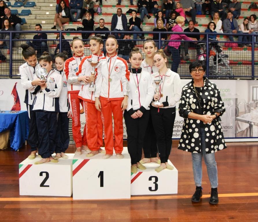 Nella categoria L3 Junior/Senior, primo posto per la società organizzatrice Fulginium, secondo per la Gymnica Bastia e terzo per la Fortebraccio.