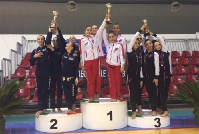 Prosegue in riva all’Adriatico il percorso vincente per le ginnaste della Ritmica Fortebraccio nel Campionato Nazionale di B1. Al Palafiera di Pesaro le già campionesse umbre salgono ancora il gradino più alto del podio e con il punteggio di 78,250 aggiungono al proprio palmares il titolo di campionesse interregionali nel raggruppamento Centro-Est. La vittoria di Pesaro spalanca alle perugine le porte per la finale nazionale che,salvo cambiamenti dell’ultimora dovuti al recente sisma,si svolgerà tra il 26 e 27 Novembre prossimi proprio al Palaevangelisti di Perugia nell’ambito della kermesse della ritmica italiana.