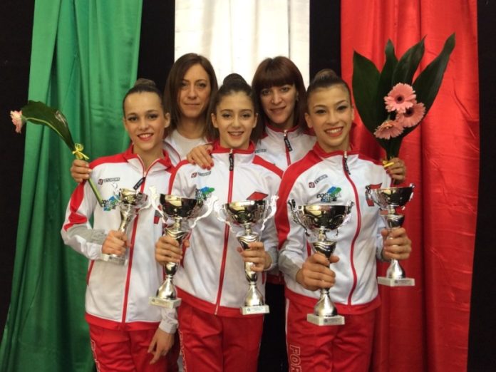 Dopo le convincenti gare regionali,che avevano visto le individualiste della Fortebraccio guadagnarsi con merito l’accesso alla fase successiva, c’era grande attesa negli ambienti della ritmica di Via dell’Ingegneria per la prova interregionale del Campionato Nazionale di Specialità in programma ad Ortona lo scorso weekend. Osservate particolari erano la tenuta emotiva e la conferma dei progressi tecnici mantenendo contemporaneamente il focus ben saldo sull’obbiettivo principale che era la qualificazione alle Finali Nazionali dei primi di maggio. Al termine della gara il bilancio per il sodalizio perugino è assolutamente positivo,le tre specialiste della Fortebraccio hanno non soltanto confermato la crescita tecnica e rispettato i programmi qualificandosi tutte per la finale con i rispettivi attrezzi,ma tornano dalla trasferta abruzzese con tre prestigiosi titoli interregionali e due ottime medaglie da podio. Francesca Civicchioni è la Campionessa Interregionale zona 4 per il 2017 con il cerchio e con la palla, Vittoria Laliscia è la Campionessa Interregionale zona 4 per il 2017 con le clavette e medaglia d’argento con il cerchio in pari merito con Emma Ducci della Fulginium di Foligno, Rachele Calamia è bronzo con la palla.