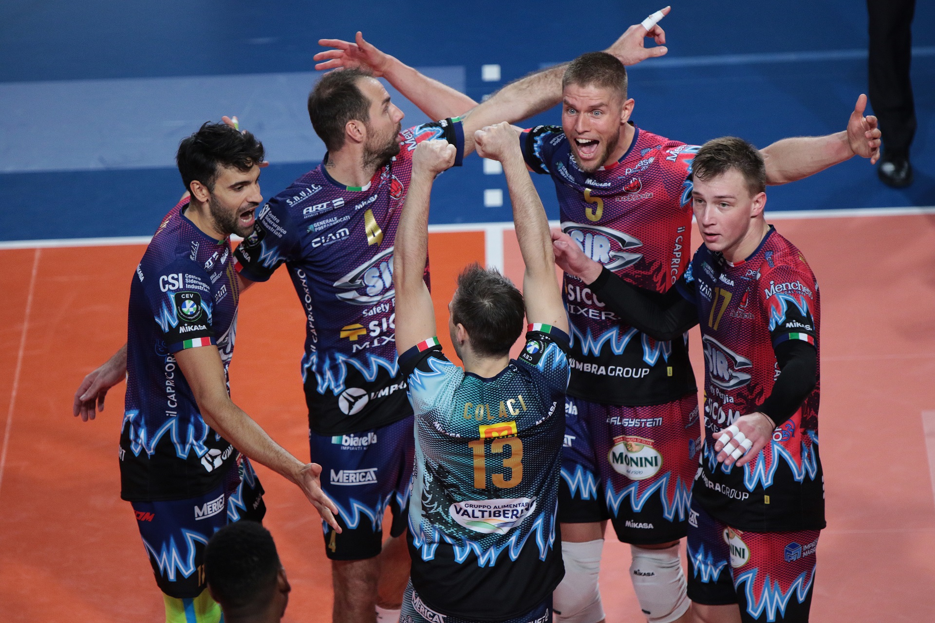 SIR SICOMA MONINI PERUGIA: Travica-Atanasijevic, Ricci-Solè, Leon-Plotnytskyi, Colaci (L). All.: Heynen