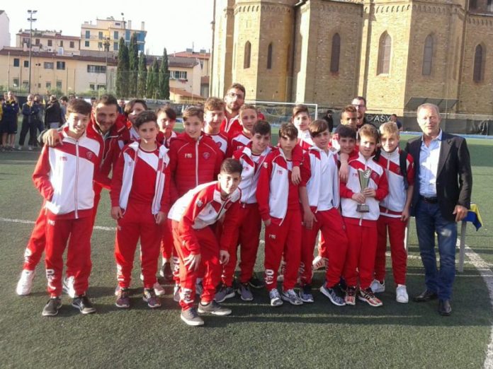 Tornano da Firenze con un 9° posto gli Esordienti 2004 di Simone Papini che hanno partecipato all’edizione 2016 della Dommo Cup, manifestazione organizzata dalla US Sales Asd di Firenze. Il Perugia, inserito nel girone B, ha perso la prima gara contro il Prato 2-1 (a segno per i Grifoni Luca Lorenzini) ed ha pareggiato l’altra gara contro la locale formazione Us Sales Asd per 1-1 (anche qui a segno Luca Lorenzini). Nella giornata di domenica i ragazzi di Papini hanno affrontato in semifinale la terza classificata del girone C ovvero l’Atletico Carrara dei Marmi vincendo 4-1 grazie alla tripletta di Eyob Lolli e al gol di Mirco Tempesta. Nella finale per il 9/10° posto la rete di Francesco Paciotti ha permesso di battere il Livorno 1-0. Al termine del torneo consegna della coppa e foto di rito.