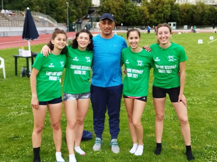 Quattro ragazze perugine hanno compiuto una grande impresa, riscrivendo la storia della staffetta 4×100 stabilendo il nuovo record regionale della categoria Allievi ed abbattendo un primato che durava da ben 12 anni. Il quartetto del Cdp Atletica Perugia, la squadra del Circolo Dipendenti Perugina, formata da Cecilia Pignatale, Maria Vittoria Ubertini, Francesca Criscuolo ed Elisa Bianchi, ha fatto fermare in questi fine settimana allo Stadio Santa Giuliana di Perugia il cronometro sul tempo di 49.81 strappando il primato al Cus Perugia che nel 2009 (con Vitali, Petramgeli, Tosti, Mariano) lo aveva portato a 50.07. La prestazione, oltre a consentire di centrare il titolo di campionesse regionali assolute, vale anche come pass per partecipare ai prossimi campionati italiani di categoria, in programma a Rieti dal 9 all’11 luglio. In quel caso saranno in gara nelle gare individuali anche la stessa Ubertini, che ha già conseguito il tempo minimo nei 200 metri (25′, e lo stesso ha fatta la Bianchi nei 100 ostacoli. Le altre due del quartetto avranno ancora tempo per conquistarsi il pass. Le soddisfazioni per la società guidata dal presidente Antonello Menconi e dal responsabile tecnico Salvatore Turco, sono arrivate ai campionati regionali assoluti anche dalla stessa Criscuolo e da Riccardo Vantaggi nei 100 metri, oltre che da Crimenere Silvia Onuegbu nel salto in lungo, e nella categoria ragazze per Margherita Castellani e Ludovica Lupattelli nella gara dei 60 ostacoli. Doppio successo anche per Tommaso Biscarini, anche lui del gruppo del Cdp, seppur tesserato per la squadra Junior dell’Atletica Libertas Orvieto, che ha conquistato il titolo regionale assoluto sia nel salto in lungo (metri 6.63) e nel salto triplo (metri 14.24).