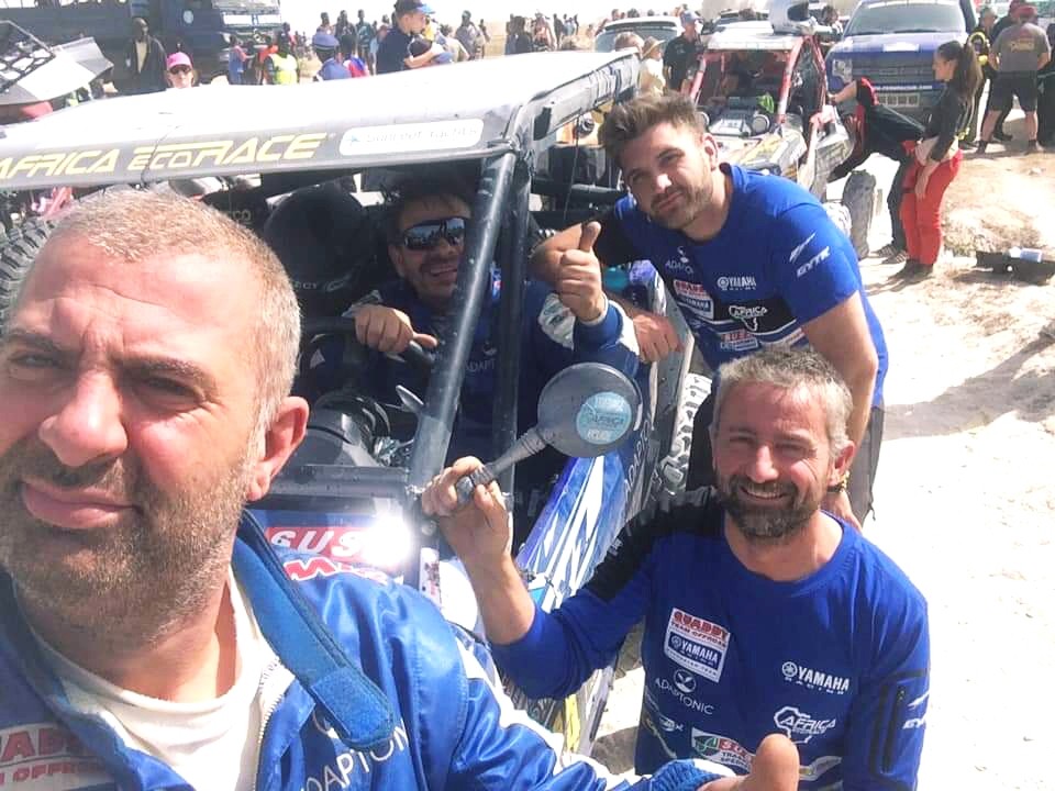 Ad accompagnarlo in questa avventura – a bordo di una Yamaha YXZ 1000RR (un performante quad Syde by Syde 4×4 biposto, appositamente adattato alla guida con comandi manuali e completamente aperto) – c’erano il navigatore Angelo Montico di Zoppola (comune in provincia di Pordenone), il giovane team manager perugino Alessandro Brufola Casotto, il meccanico David Giovannetti di Pistoia ed il team Quaddy supporter di Yamaha.