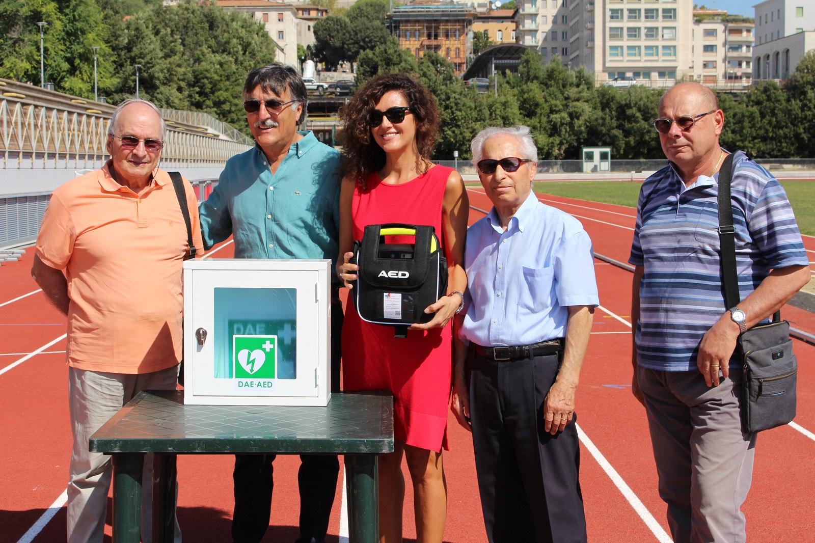 Sempre più impegnata nell’attività di prevenzione delle cardiopatie, l’Associazione Cuor di Leone Onlus ha voluto donare un defibrillatore al Comune di Perugiada destinare allo Stadio Santa Giuliana. La cerimonia di consegna si è svolta questa mattina presso lo stadio, alla presenza dell’assessore allo Sport e Commercio del Comune di Perugia, Clara Pastorelli; del Presidente dell’Associazione Cuor di Leone Onlus, Quartilio Mosconi e del Presidente della Federazione Italiana di Atletica Leggera (FIDAL), Carlo Moscatelli.