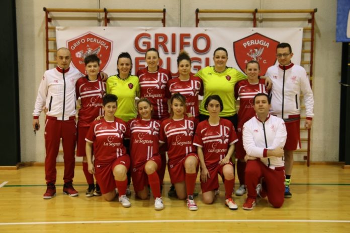 La Grifo Perugia Calcio A5 regola l’Agello con un perentorio 4-1 e continua la sua marcia nel campionato di categoria.  Al palasport di Ellera, come da previsioni, non sono mancate le emozioni per la soddisfazione del numeroso pubblico presente. In avvio di gara è stato l’Agello a trovare il vantaggio, complice un atteggiamento non proprio positivo delle grifone, troppo leziose e disattente in alcune fasi di gioco. La reazione, però, non si è fatta attendere e prima del riposo Parise ha firmato il sorpasso con un doppietta. Nella ripresa la Grifo ha fatto la voce grossa ed arrotondato il risultato ancora con Parise (tris personale) e con Romina Natalizi, che ha beffato l’estremo difensore avversario con lo “scavetto”. Risultato rotondo che non lascia spazio a recriminazioni: ora la Grifo Perugia Calcio A5 è attesa dalla trasferta di sabato 25 marzo in casa del Gadtch.