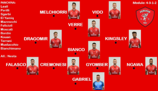 Probabile formazione Perugia: (4-3-1-2) Gabriel; Ngawa, Gyomber, Cremonesi, Falasco; Kingsley, Bianco, Dragomir; Verre; Vido, Melchiorri. A disp.: Leali, Perilli, Sgarbi, El Yamiq, Mazzocchi, Felicioli, Bordin, Moscati, Kouan, Terrani, Mustacchio, Bianchimano. All.: Nesta