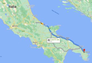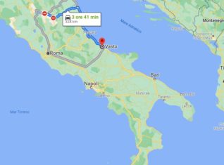 1^ Tappa: Perugia-Vasto,  328 Km, 3 ore e 30 minuti (salvo traffico)