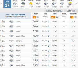 E le previsioni meteo non lasciano scampo: pioggia per tutto il pomeriggio e la serata. Il picco di precipitazioni si avrà intorno alle 16, due ore prima del fischio d’inizio.