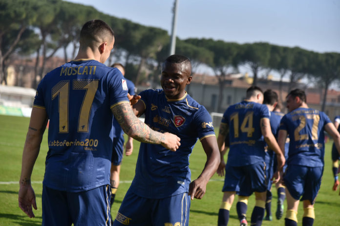 In una partita che somigliava più al beach-soccer che al calcio, vista la tanta sabbia che faceva capolino tra l’erba del prato dello stadio di Pesaro, era difficile poter giocare bene e il Perugia ha dovuto adeguarsi con Caserta che ha schierato un centrocampo fisico con Moscati al posto di Burrai e Di Noia, all’esordio da titolare al posto di Sounas a fianco del confermato Kouan, che ha poi deciso la gara con un provvidenziale colpo di testa a porta sguarnita, in una delle sole due vere occasioni create dai grifoni. L’altra occasione, arrivava ad inizio ripresa ma il sinistro radente di Di Noia, si schiantava sul palo.