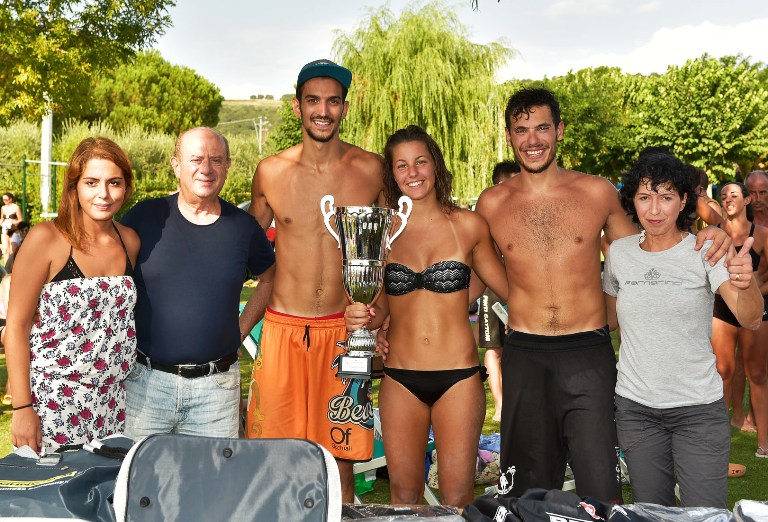 Va in archivio il Memorial Claudio Giri, manifestazione indetta da Pianeta Volley, un evento che ha avuto l’onore di veder partecipare alcuni dei migliori interpreti della pallavolo all’aperto del territorio umbro, nonché qualche elemento delle province limitrofe. Tante persone che conoscevano Claudio sono tornate in campo a distanza di anni per onorare la sua memoria in questa terza edizione di sand volley 3×3 misto. Allo stabilimento balneare Zocco Beach di San Feliciano è stato grande il divertimento facendo ritrovare sotto rete tante persone mosse dalla passione per questa disciplina che ha il pregio di unire persone che non si conoscono come una grande famiglia. Le sedici squadre ed i sessanta atleti partecipanti, non si sono risparmiati nelle sfide agonistiche che si sono disputate sotto il solleone. Ad aggiudicarsi il torneo ed il titolo 2016 è stata la squadra dei Finti Gattoni (Chiara Capitini, Niccolò Cappelletti, Valentina Cappelletti, Eva Spacci, Tommaso Troiani), una terna che si è imposta in una finale emozionante al termine di tre combattutissimi set sul collettivo dei Tutto (Margherita Gallina, Gianluca Iaccarino, Davide Urbani), molto accreditati alla vigilia, con il seguente punteggio (21-16, 21-19). Terzo gradino del podio per la formazione dei Butta Su (Filippo Agostini, Gianmarco Marta, Rita Uccellani, Giada Vergoni), che nella finale di consolazione hanno superato i rivali denominati Chico (Fabio Coletti, Eleonora Monti, Francesco Racanella), autentica sorpresa del torneo; in questo caso il risultato del match è stato più netto e la partita si è risolta in due set (21-18, 21-10). Momento divertente quello della consegna dei premi individuali creati al momento, ma sono anche stati assegnati i premi più seri, il miglior giocatore della manifestazione è risultato Filippo Agostini, mentre è stata eletta migliore giocatrice Giada Vergoni. Da sottolineare la grande mole di lavoro svolta dallo staff arbitrale formato da Paolo Pocceschi, Nunzio Bishara, Angelina Siomuli, Roberto Guerra che hanno consentito di svolgere al meglio il tabellone delle gare, sotto i cocenti raggi del sole, con enorme professionalità. Tra gli ospiti illustri della manifestazione una parte di rilievo l’ha avuta la olimpionica Laura Giombini che è intervenuta per un saluto ed è stata acclamata come una regina dai presenti che l’hanno seguita recentemente a Rio de Janeiro. Da rimarcare anche la presenza alla cerimonia di premiazione della pluricampionessa di pallavolo Mirka Francia che ha voluto essere vicina alla famiglia di un grande amico. La manifestazione ha avuto la collaborazione di Volley Foto, sito internet specializzato sulla pallavolo indoor e all’aperto, con il fotografo Michele Benda che come sempre ha immortalato i momenti più belli fuori e dentro al campo, saranno visibili sul sito www.volleyfoto.it tutte le foto del torneo. La premiazione è stata coordinata da Debora Ragnacci, moglie del compianto Claudio Giri, che ha rimarcato l’importanza di avere sempre una visione positiva della vita, magari all’insegna dello sport. Ma se tutto ciò è stato possibile è anche grazie ai partner ufficiali che hanno sostenuto in maniera determinante questo appuntamento: Bartoccini Gioiellerie, Conad Ipermercato, Quasar Village, Gruppo Grifo Agroalimentare, Terre Margaritelli ed Unione Parkinsoniani Perugia che con i propri prodotti hanno reso più gustosa e piacevole l’intrattenimento. Ringraziamenti infine anche per i gestori dell’impianto Gianni Giannetti ed Andrea Giannetti che hanno messo a disposizione tutta la loro professionalità in un palcoscenico di notevole fascino. È stata una partecipazione sentita da parte di tutti, uniti sotto la bandiera della solidarietà incoraggiando le iniziative di Airc che si prodiga per la ricerca sul cancro e Con Noi che opera in favore dei malati terminali presso la struttura Hospice La Casa nel Parco di Perugia.