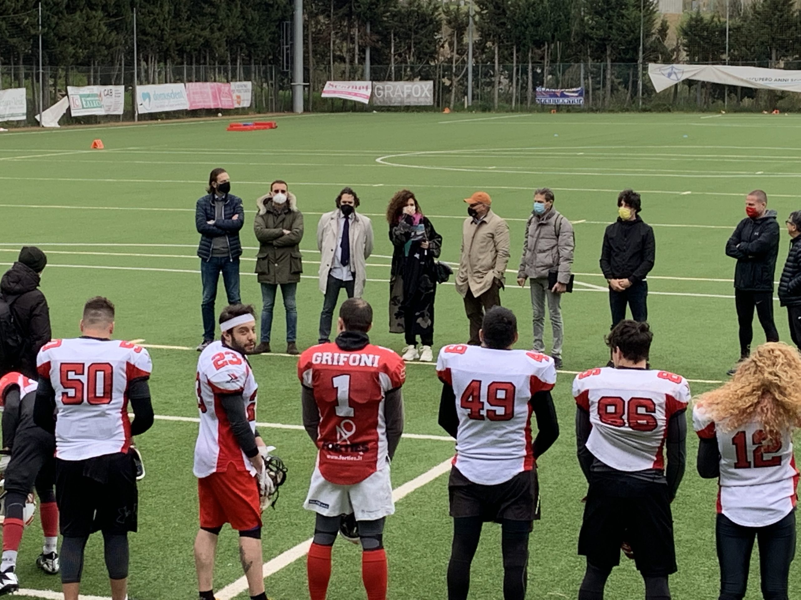 “Mi complimento con la dirigenza – ha dichiarato la stessa Pastorelli – per quanto stanno facendo in questo momento così difficile. Non è facile pensare allo sport di fronte a continue restrizioni e a protocolli stringenti. Qui ho trovato una grande organizzazione e un rigido rispetto di tutte le normative legate all’emergenza sanitaria. Come amministrazione siamo orgogliosi che una disciplina così importante e in via di sviluppo a livello nazionale, sia rappresentata a Perugia dai Grifoni, quest’anno anche unica realtà e riferimento per tutto il territorio regionale. Ho avuto il piacere di conoscere anche il bellissimo volto femminile di Ambra Marcucci, valente atleta che sta impreziosendo il progetto sportivo di questa società, aprendo degli scenari importanti nella nostra città anche per il football americano tinto di rosa”.