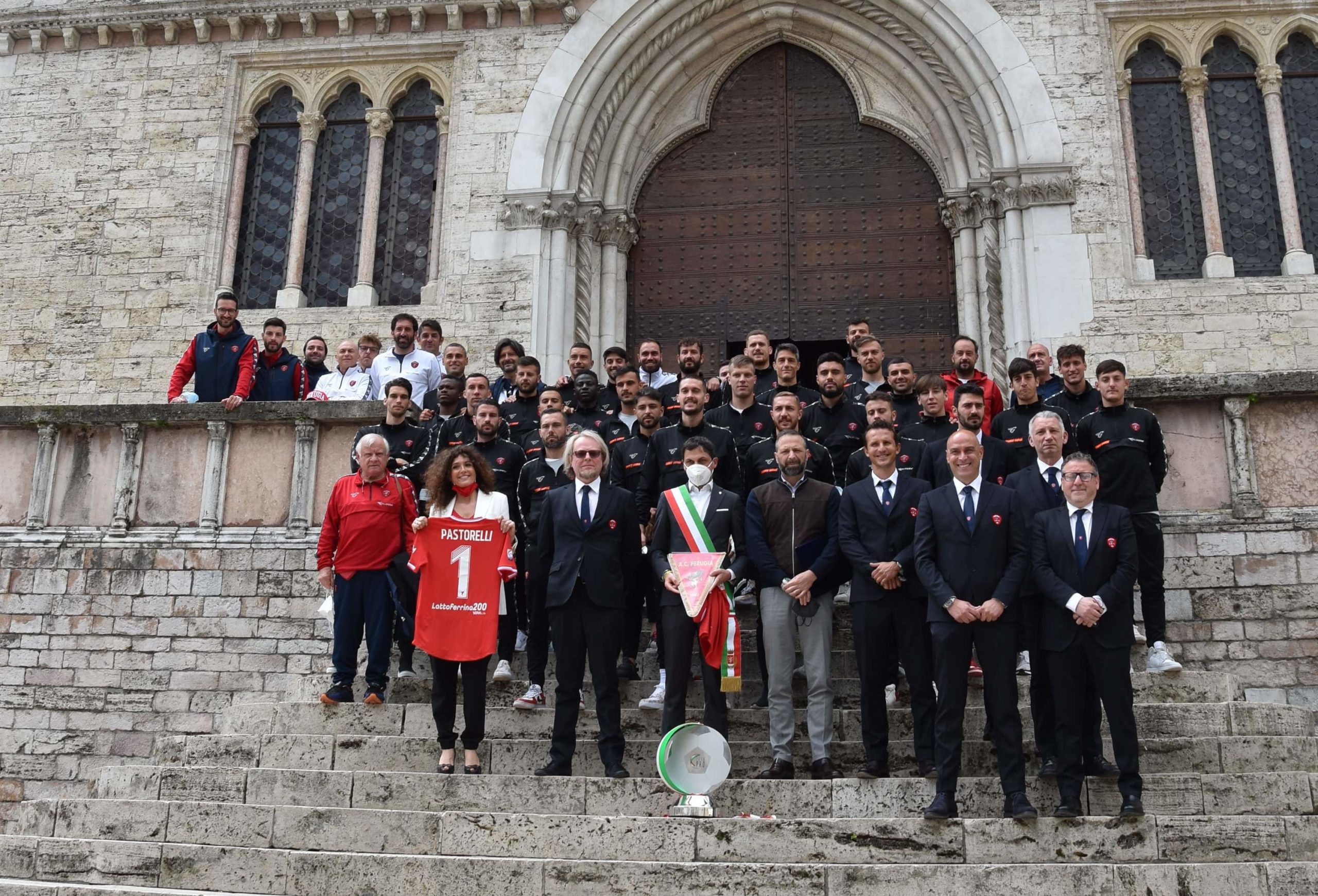 Domenica 23 maggio, infatti, è stata l’occasione per celebrare il trionfo del Perugia Calcio che riconquista, dopo un solo anno di “purgatorio” , la serie B al termine di un’incredibile rincorsa, culminata nel sorpasso in extremis al Padova. A ricevere lo staff tecnico, dirigenziale ed i giocatori del Perugia Calcio, presenti al gran completo, sono stati il sindaco Andrea Romizi e l’assessore Clara Pastorelli (presente anche l’assessore Luca Merli) che si sono voluti far portavoce della gioia di un’intera città, pronta a ripartire, anche sportivamente, dopo un anno di restrizioni legate alla pandemia. Dunque Grifo in prima pagina, come merita, perché quella ottenuta nella stagione 2020-2021 non è stata una promozione facile, né, tanto meno, scontata, ma è un successo che cancella sul campo la delusione dell’estate 2020.