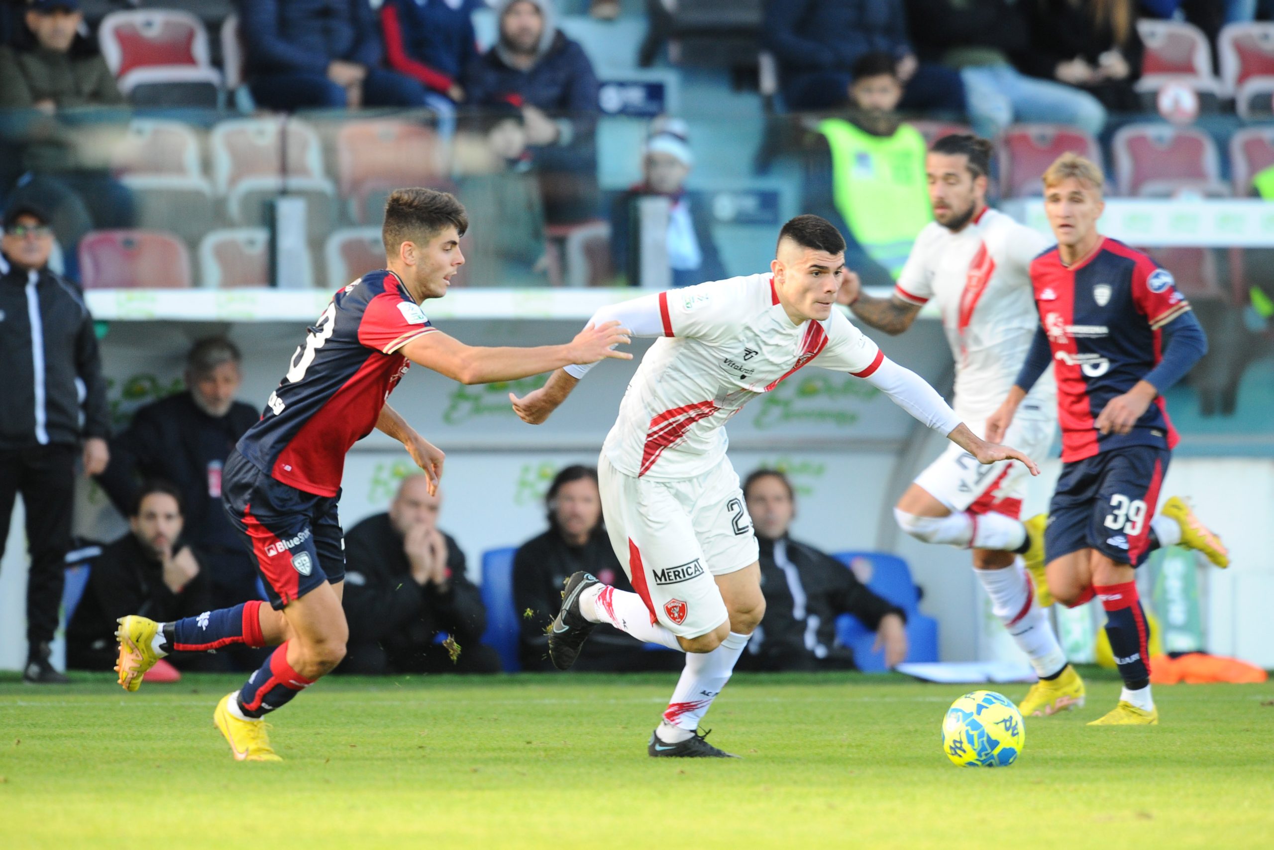 I sardi perdono invece due pedine sempre per aver raggiunto la quinta ammonizione: saranno out l’ex Grifo Alberto Dossena e il forte centrocampista croato Marko Rog.