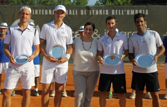 Pronostico rispettato nel tabellone di doppio della Distal & ITR Group Tennis Cup. Il torneo tuderte a coppie è andato infatti al tandem testa di serie nr. 1 della rassegna, composto dal romano Flavio Cipolla e dall’argentino Maximo Gonzalez. Per tutta la settimana i due tennisti hanno mostrato un grande affiatamento, unito a tecnica invidiabile, armi determinanti per portare a casa il trofeo. In finale Cipolla e Gonzalez hanno superato i tedeschi Andreas Beck e Peter Gojowczyk con un perentorio 6-4 6-1. Combattuto il primo set, nel quale i teutonici hanno provato a rendere dura la vita ai favoriti del tabellone, che però hanno mantenuto i nervi saldi e condotto la partita con grande determinazione. Vinto il primo parziale, Cipolla e Gonzalex hanno viaggiato a gonfie vele verso il successo chiudendo in scioltezza ed esibendo colpi da applausi. Alle premiazioni sul centrale Blue Panorama Airlines ha preso parte anche Angela Autorino in rappresentanza del gruppo assicurativo Postevita main sponsor della manifestazione. A premiare inoltre Roberto Carraresi, presidente del Comitato Regionale Umbro della Federazione Italiana Tennis, che tra le altre cose ha omaggiato con una targa il presidente del Tennis Club Todi Marcello Marchesini.