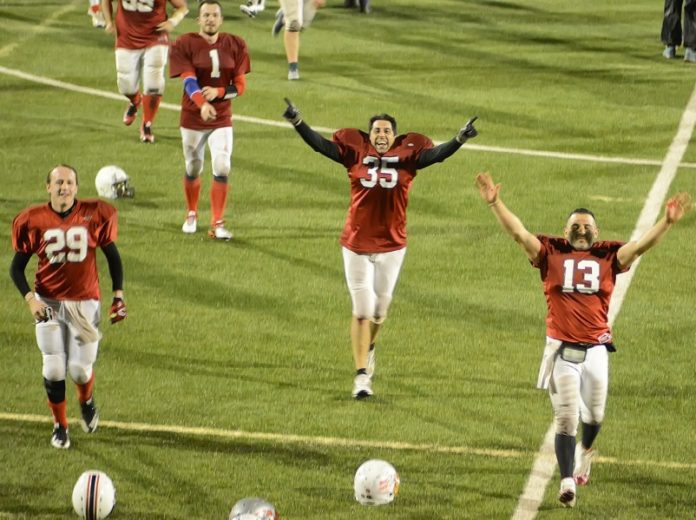 Straordinari Grifoni. I biancorossi perugini continuano nella stagione da favola e mettono a segno un altro colpo memorabile vincendo a Napoli, in casa dei fortissimi Briganti. Una prestazione strepitosa da parte di Freddini e compagni, che con questo blitz si guadagnano il pass per la semifinale di conference. La partita in terra di Campania si presentava ricca da insidie, ma ancora una volta, con compattezza e belle giocate tecniche, il team di coach Caligiana è riuscito a centrare il successo. Subito un touch down al primo drive ha aperto la strada ai biancorossi, che con una difesa di ferro comandata da un superbo Valigi ed il solito impeccabile Freddini in attacco hanno controllato abilmente la contesa. “Abbiamo vinto contro una formazione che si presentava a questa sfida imbattuta, e questo fa aumentare ancora di più la consapevolezza nei nostri mezzi – dicono il capo allenatore Stefano Caligiana e l’offensive coordinator Fabio Sacconi -. Questi ragazzi sono straordinari, hanno un grande spirito di gruppo e crescono partita dopo partita. Adesso recuperiamo le forze e andiamo a giocarci questa semifinale di conference con la solita voglia e grandissimo entusiasmo”. Il team napoletano non è riuscito a scardinare la retroguardia perugina, mentre il quarterback Freddini con ben due touch down su corsa ha fatto tutta la differenza del mondo appannaggio dei Grifoni, poi a segno con Ferrini (grande ricezione) e con le trasformazioni di Magara e Brachini, quest’ultimo abile a centrare i pali anche con un field goal. La corsa di Perugia non si ferma, nel mirino ora c’è un’altra trasferta ricca di fascino, quella prevista nel prossimo fine settimana in Liguria, in casa dei Predatori Golfo del Tigullio Chiavari. “In settimana come sempre analizzeremo i nostri avversari – continua lo staff tecnico – e ci prepareremo con scrupolo. Intanto godiamoci questa bella vittoria”. E come non essere d’accordo?