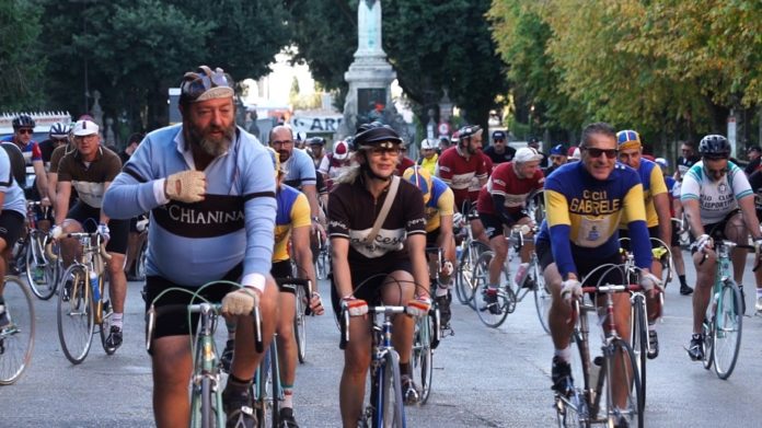 È partita dalla centralissima piazza IV Novembre di Perugia, domenica 30 settembre, la cicloturistica d’epoca ‘Francesco nei sentieri’, manifestazione ciclistica in abbigliamento d’epoca, aperta alle biciclette storiche antecedenti il 1986.