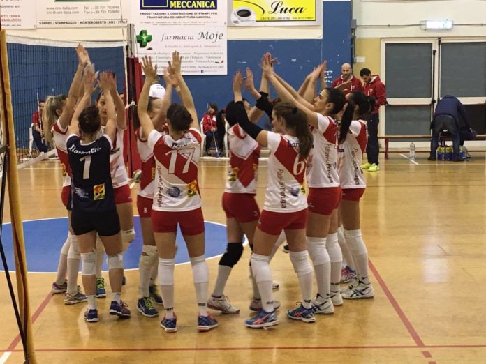 La 3M Pucciufficio vince in trasferta sul campo di Gradara contro la Team 80 ed incamera altri tre punti, che non muovono la ormai consolidata settima piazza, ma dimostrano come la formazione biancorossa tenga ancora dritta la barra del timone. Fra alti e bassi la gara è stata condotta dalle biancorosse che hanno fatto un po’ tutto da sole e nei momenti di sbandamento brave le giovani avversarie ad approfittarne. Coach Moretti deve ancora fare a meno di Lachi e rimescola le carte schierando Simoncini in regia e Stecconi opposto, Torcolacci in coppia con Cerini al centro, Sopranzetti e Concetti in banda, Pelinku libero. Brighigna opta per Pero al posto di Testasecca nel ruolo di centrale, lasciando invariato il resto della formazione. Primo parziale con le locali che spingono al massimo cercando di imporre il proprio ritmo alla gara a caccia soprattutto dei punti salvezza. Brighigna cerca di scuotere le sue senza successo e chiudendo i time-out a disposizione sul 19-11. Maggiore veemenza il tecnico tifernate la mette durante i canonici tre minuti di pausa per il cambio campo ed al rientro conferma Fiorucci, già subentrata nel corso del primo parziale a Barneschi, nel ruolo di opposto. Il piglio delle biancorosse è completamente diverso, cede il muro di Gabicce-Gradara sotto i colpi di Rossit e Fiorucci e sul 15-20 sembra ormai fatta. Momento di relax tra le fila ospiti e Brighigna deve intervenire per due volte nel volgere di pochi minuti con il parziale tornato in parità (21-21). Battute finali che sorridono alla maggiore esperienza e caratura delle ospiti. Più agevoli gli ultimi due parziali con Perugia che stavolta non concede tregua alle avversarie, Bertinelli fa lavorare molto le schiacciatrici di banda che aprono la strada alla vittoria.