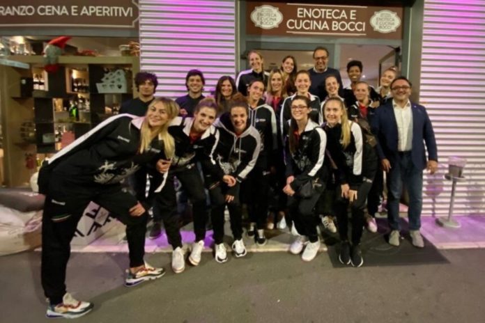 L’enoteca è stata completamente riservata alla squadra, dove in un ambiente molto accogliente e rilassato, giocatrici e staff hanno potuto ricaricarsi dopo i duri allenamenti e gustare le prelibatezze preparate al momento dalla cucina ed accompagnate da vini di ottimo livello.