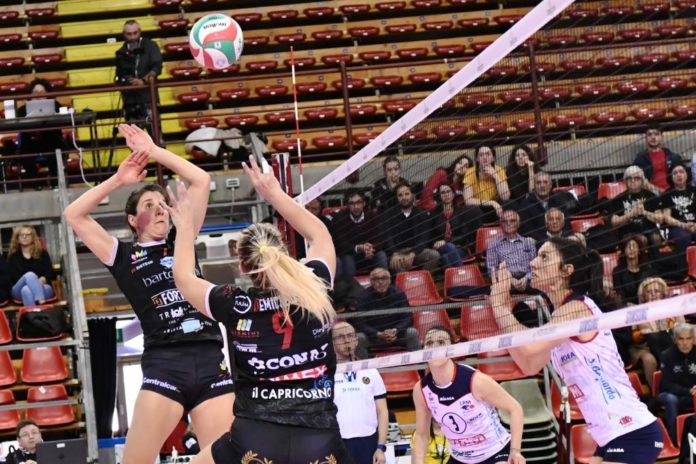 Coach Fabio Bovari scende in campo con Demichelis in diagonale con Irina Smirnova; Giulia Pascucci e Giulia Pietrelli schiacciatori ricevitori; al centro Luisa Casillo e Giulia Kotlar mentre il libero è Eleonora Bruno. Risponde coach Delmati con Valpiani in regia, Zanette opposto, Rebora e Tonello al centro, Biganzoli e Schlegel attaccanti di posto quattro, Agostino libero.